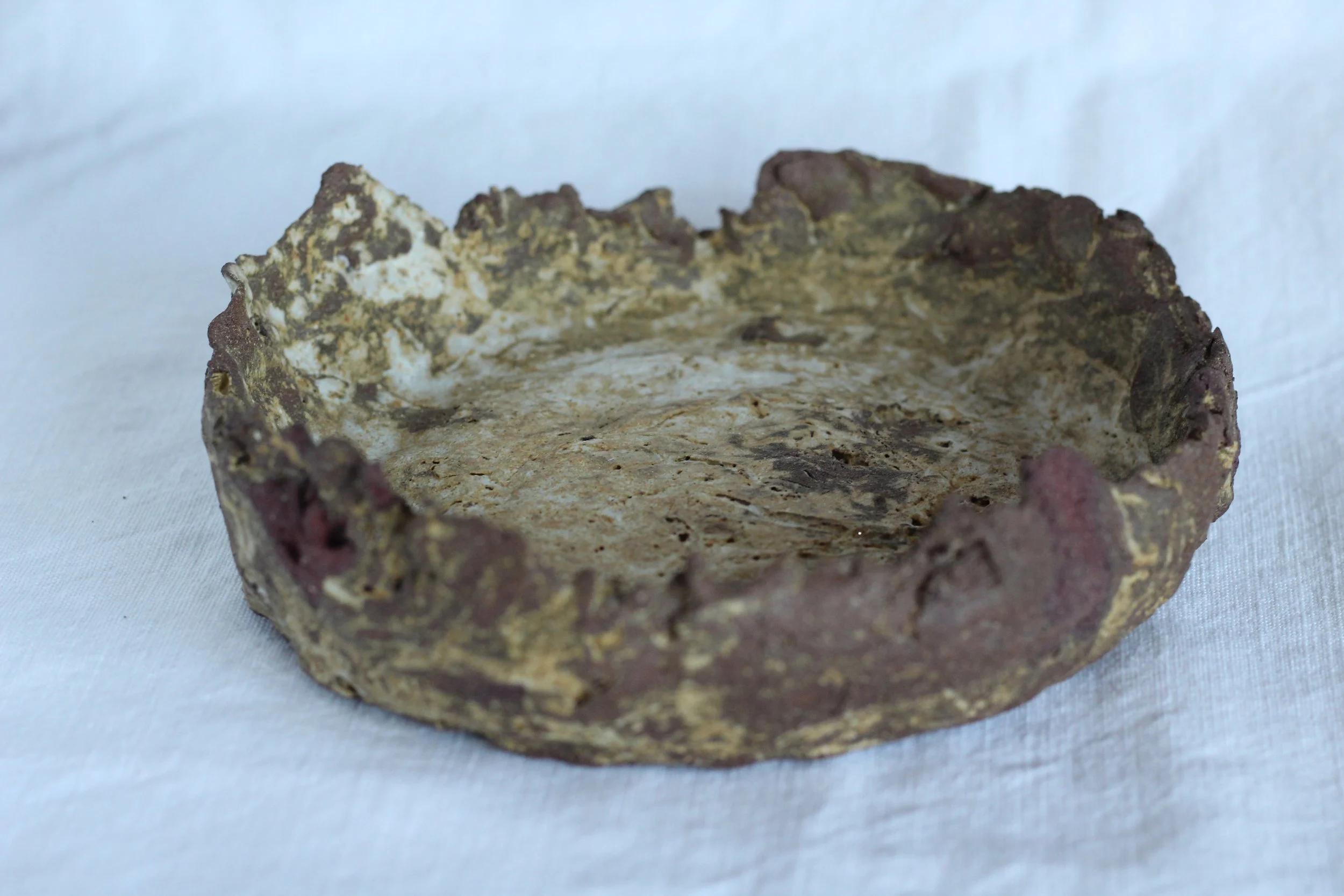 Aquest és el primer plat de prova realitzat al projecte "De la granja al plat". Al recollir els fems de la granja vaig procedir a pastar-los amb i amb la técnica d'urdit i pinça vaig anar construint aquesta primera peça.
