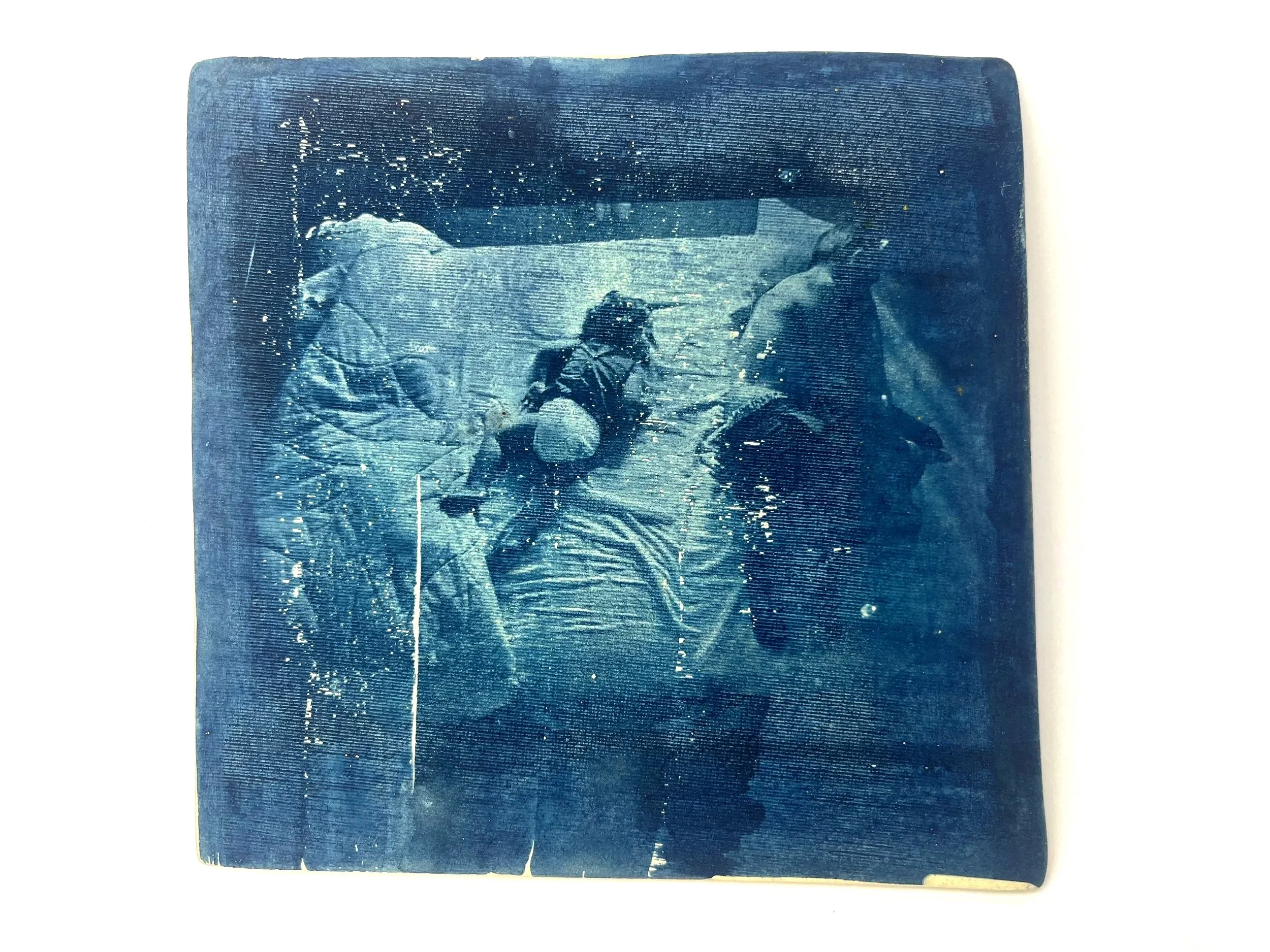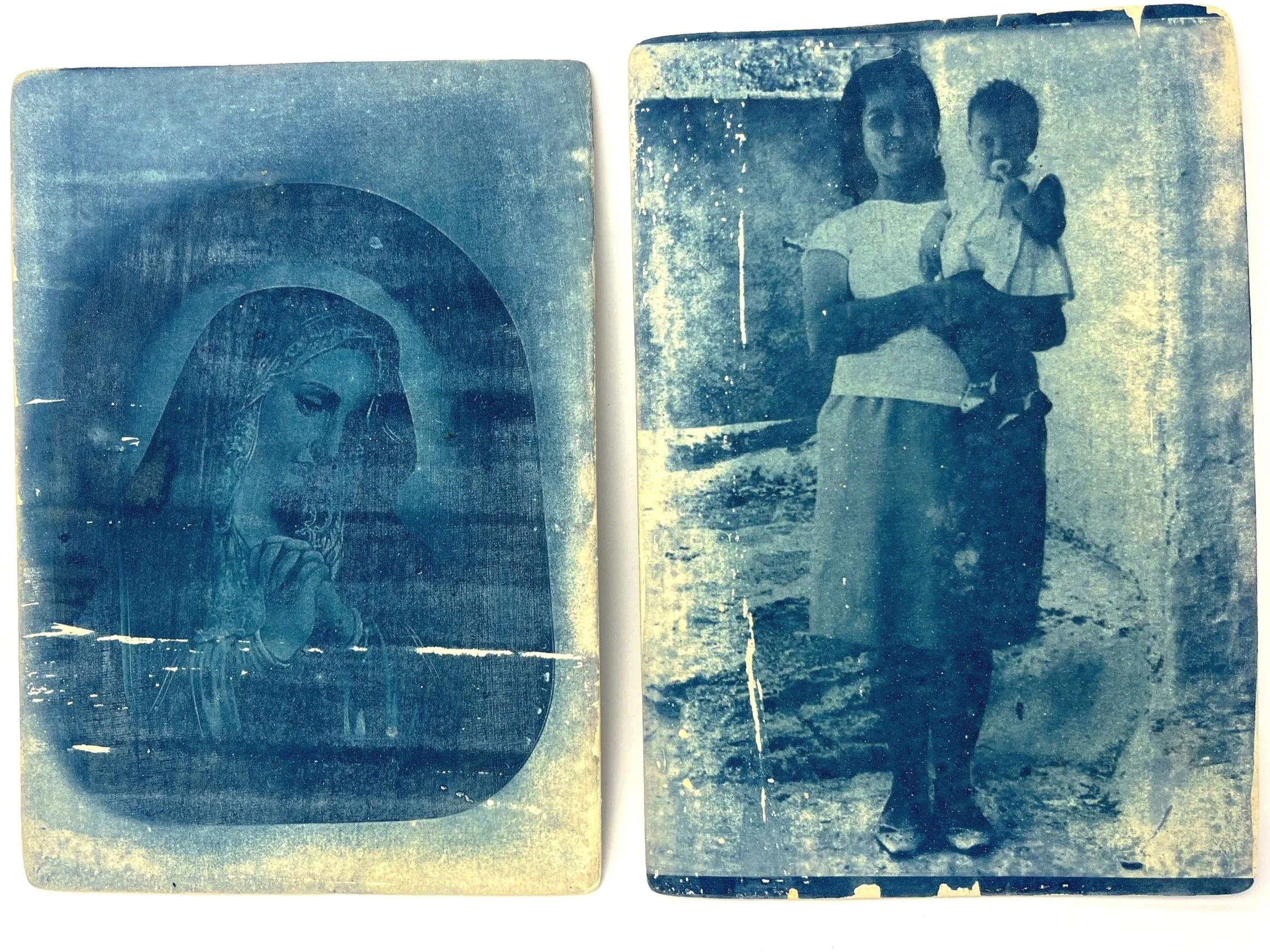Aquest projecte de cianotípia sobre ceràmica constitueix una reconstrucció íntima de la memòria familiar a través de tres imatges significatives que connecten diferents etapes de la vida de la meva àvia. Les fotografies, transferides com a cianotípies d’alta temperatura sobre rajoles ceràmiques, esdevenen petjades permanents d’un relat personal.